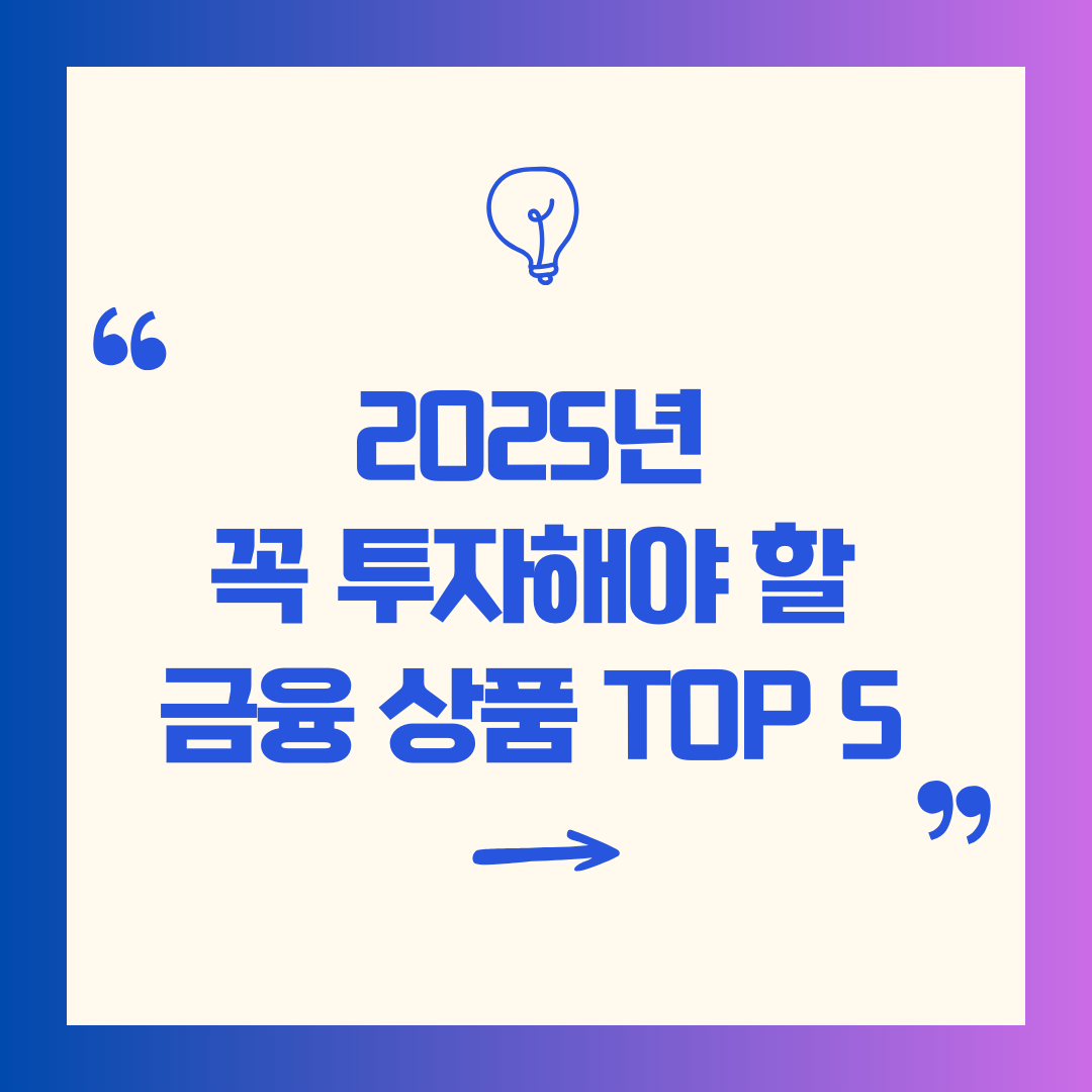 이번 포스팅에서는 2025년 꼭 투자해야 할 금융 상품 TOP 5 에 대해 한번 알아보겠습니다